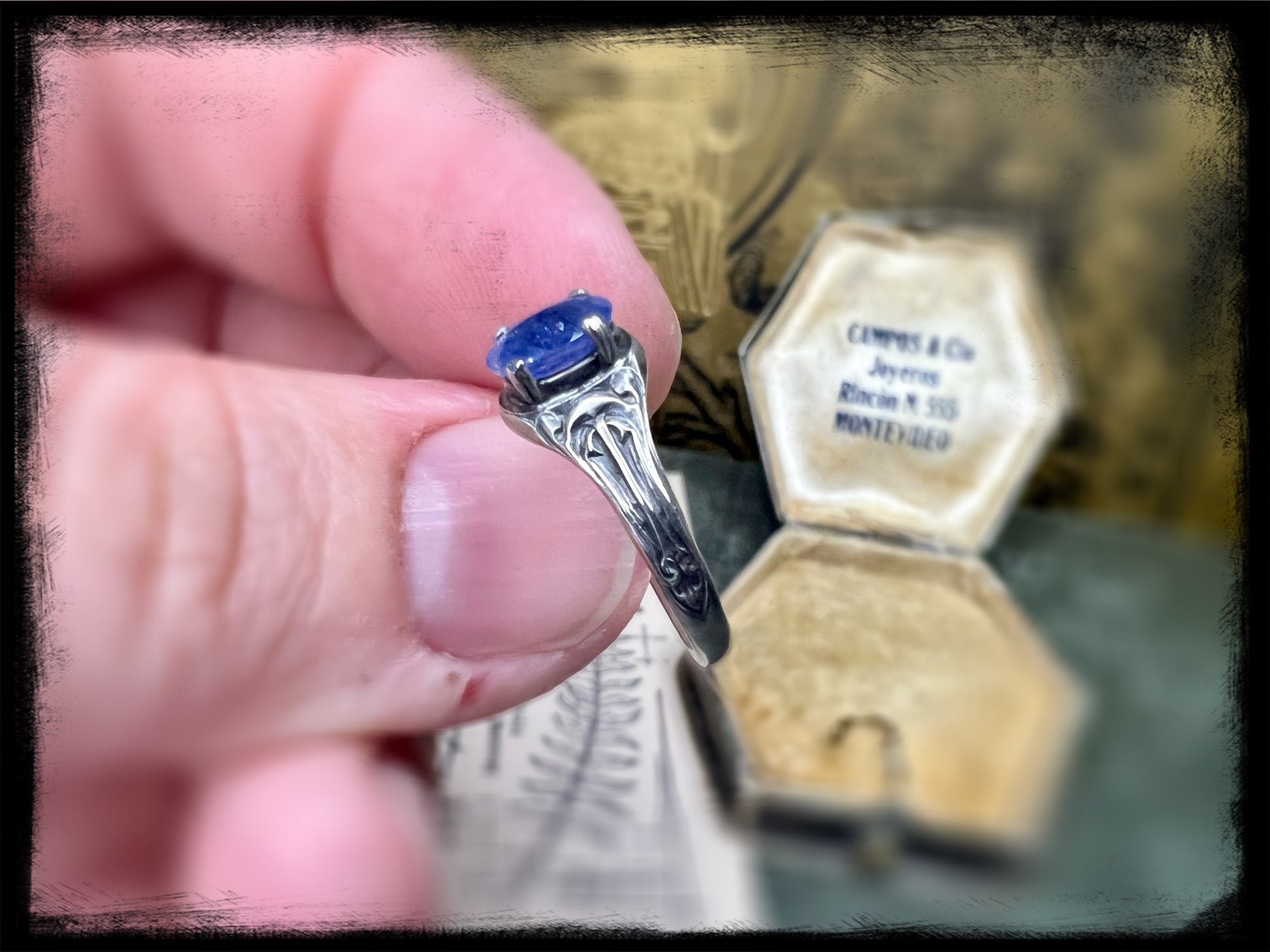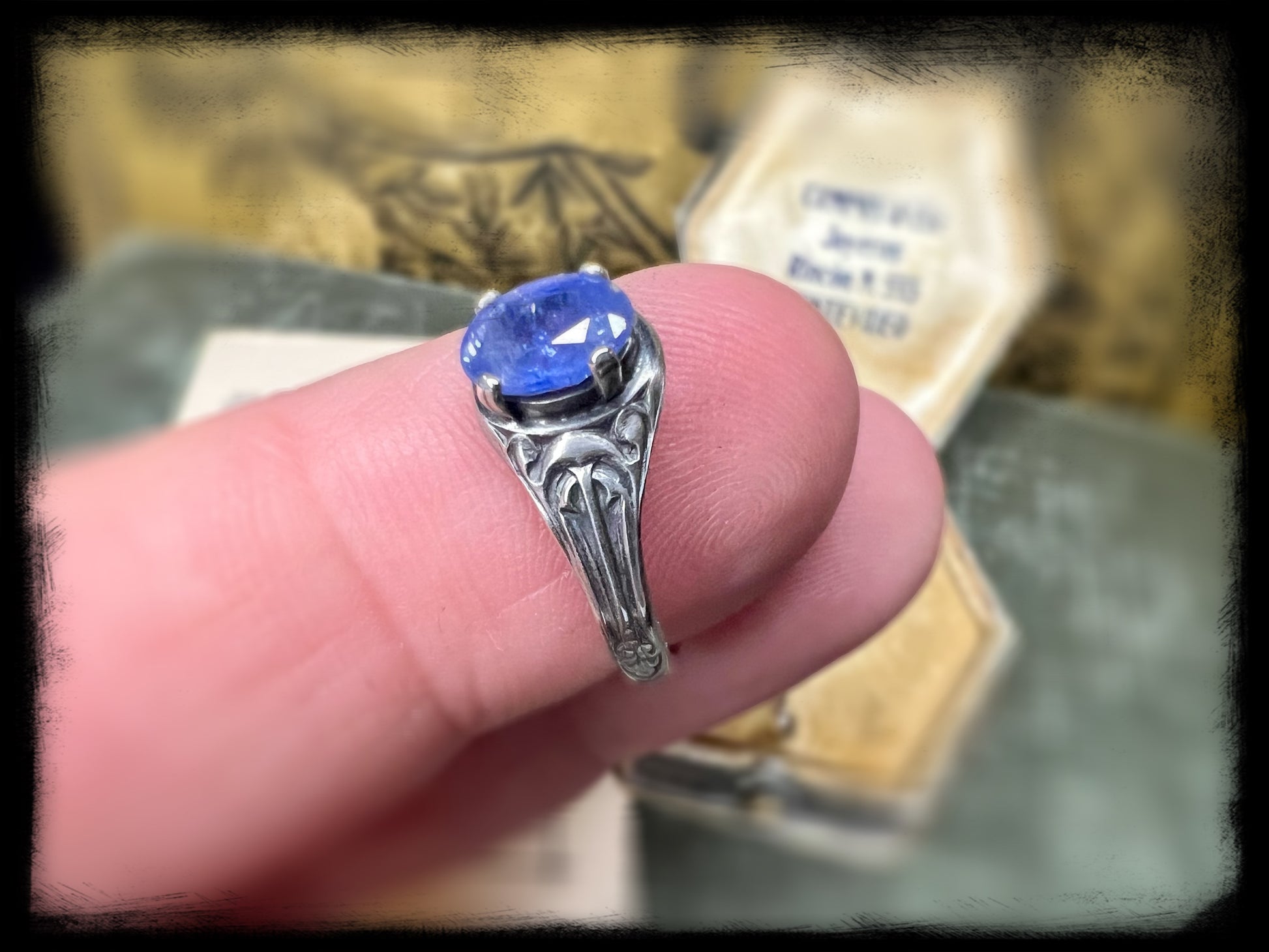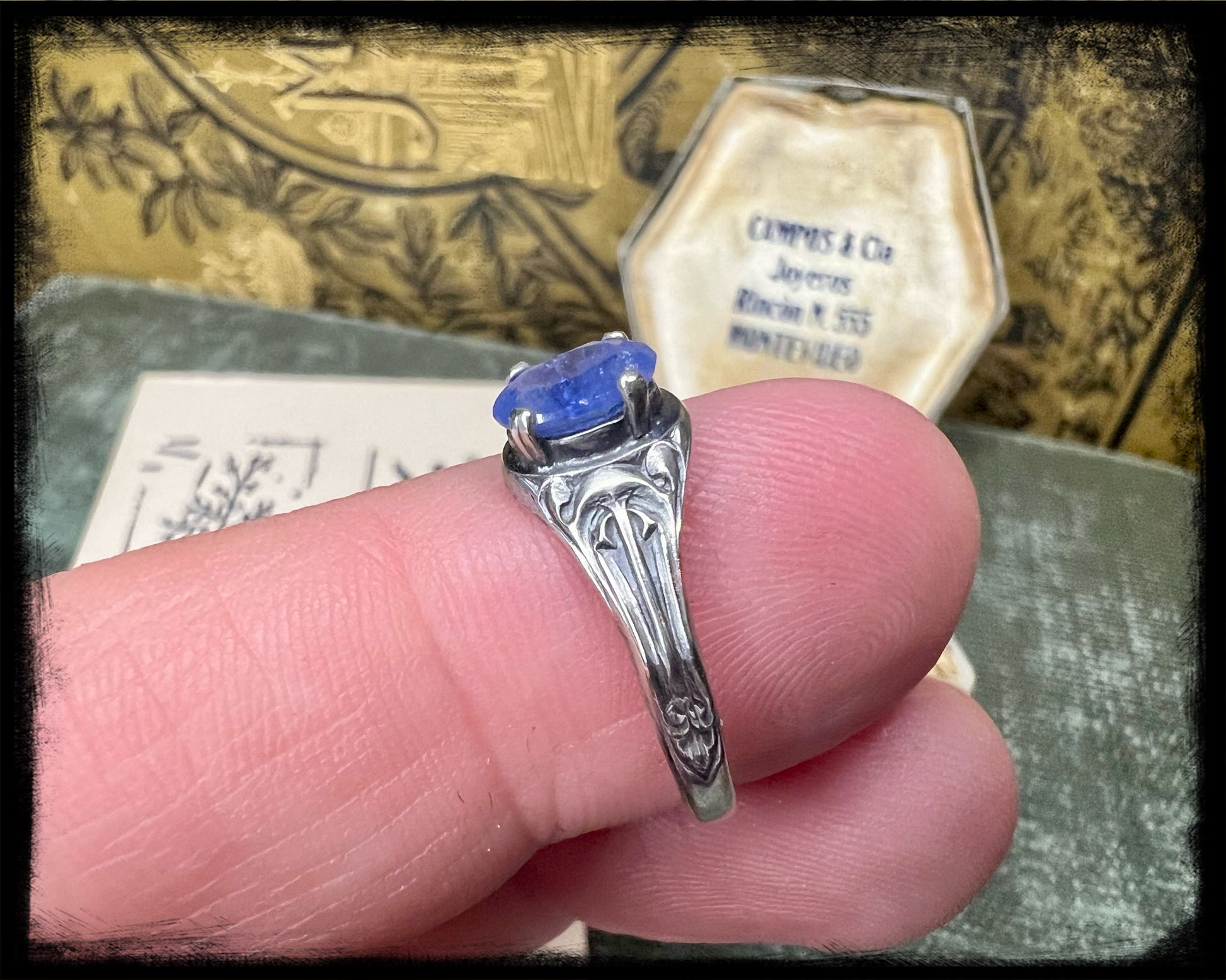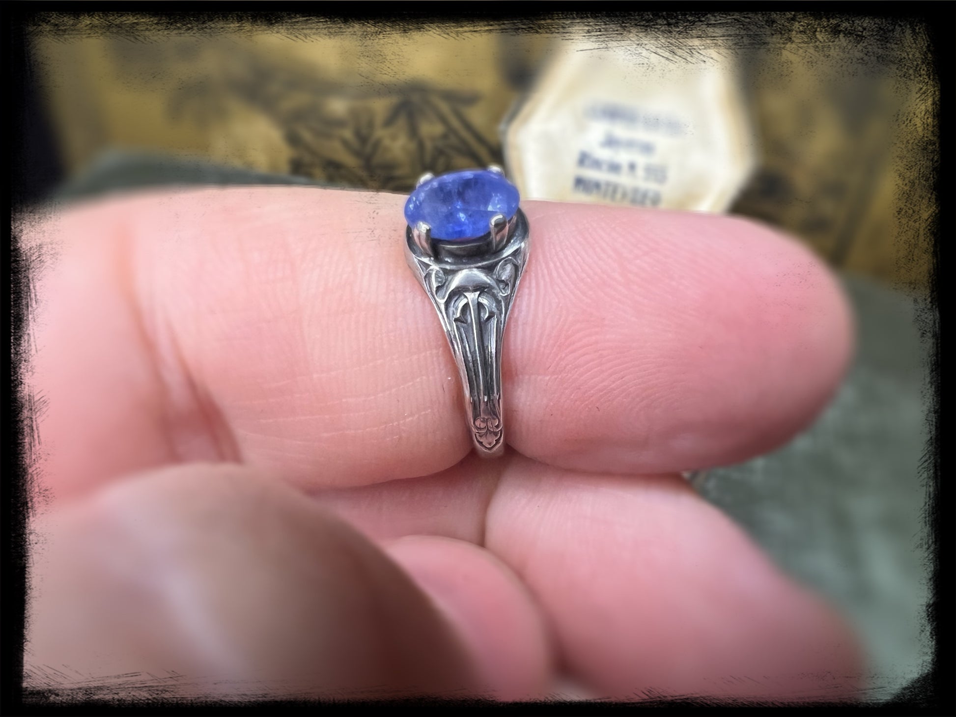Art Deco Style Sterling Silver with Tanzanite Setting-Size 7.25-Artisan Handmade Jewelry