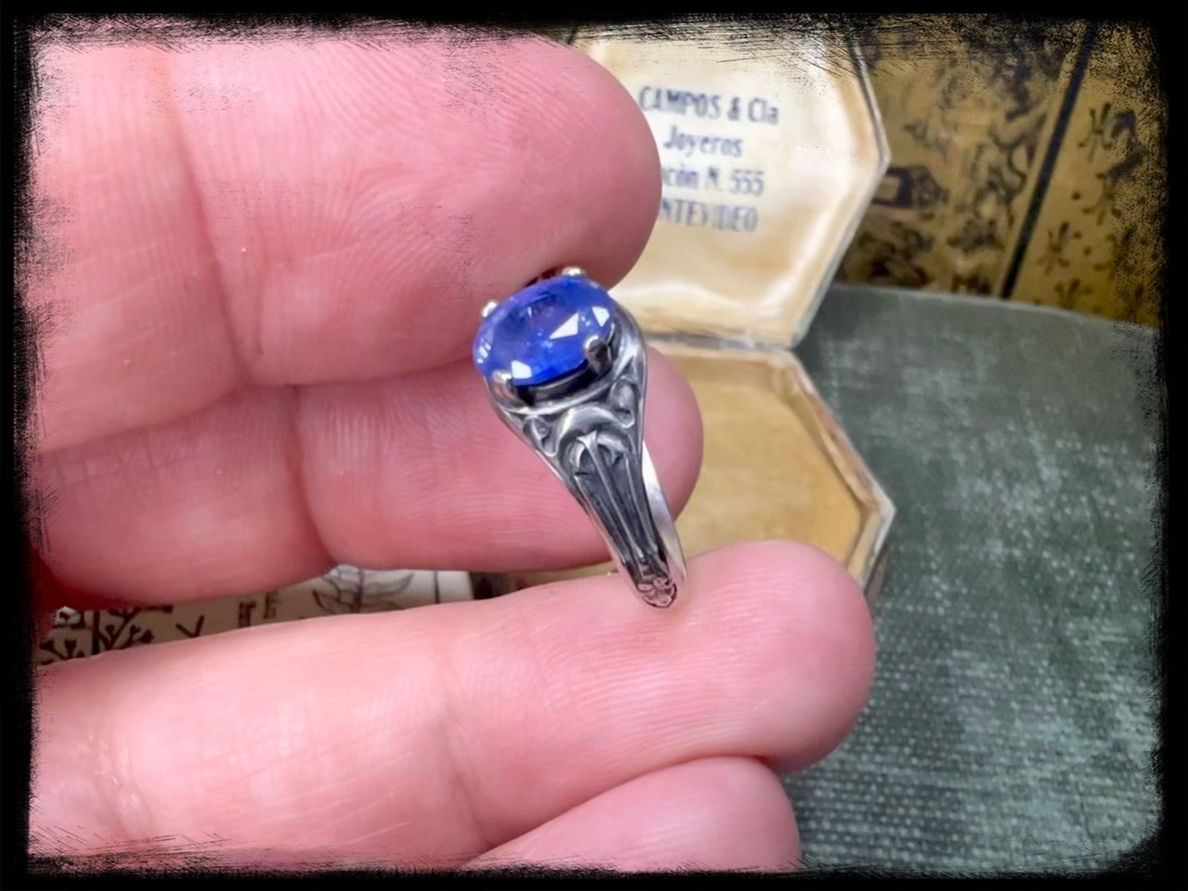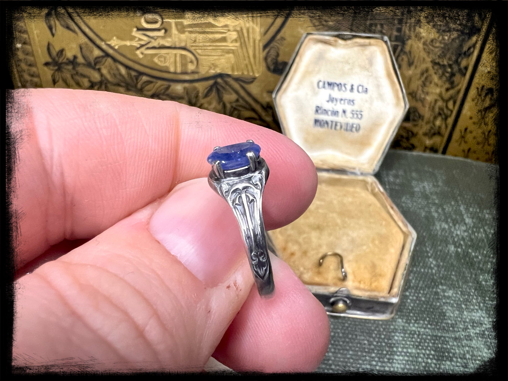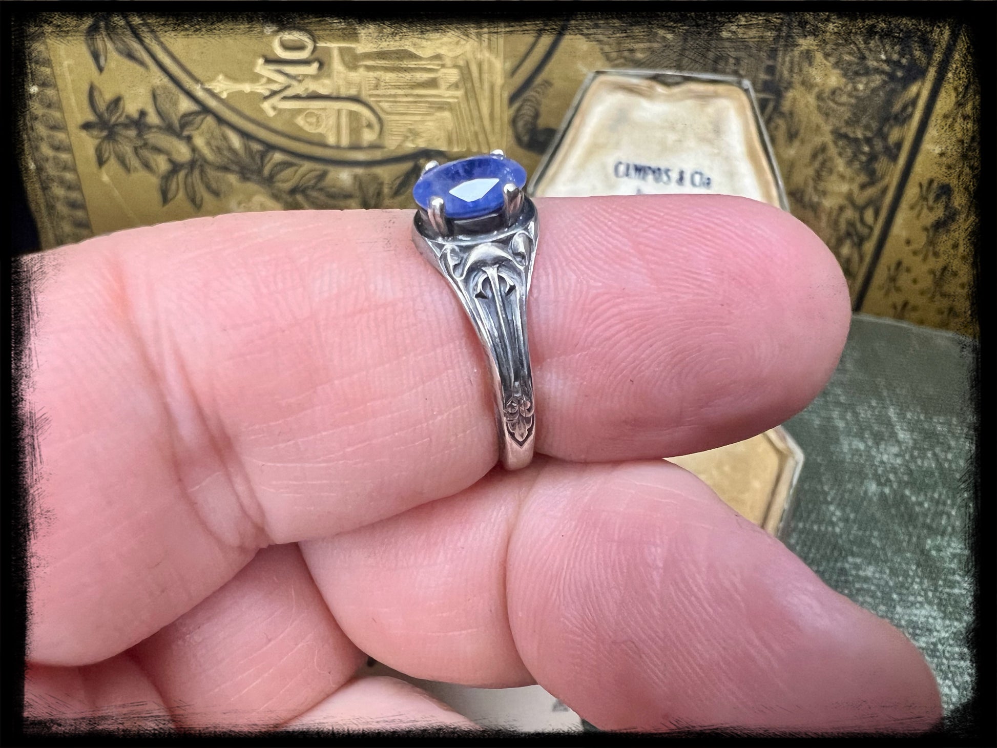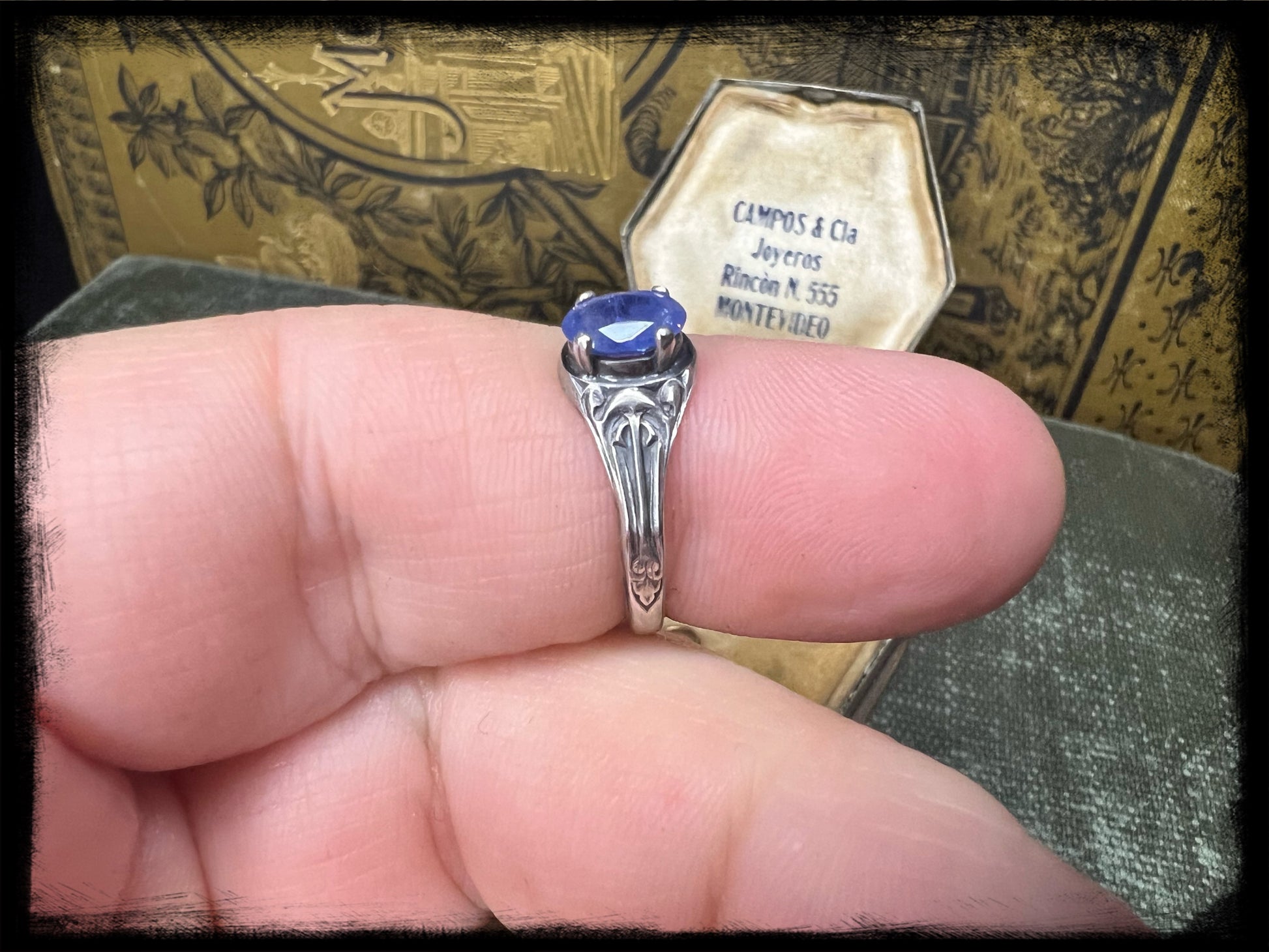 Art Deco Style Sterling Silver with Tanzanite Setting-Size 7.25-Artisan Handmade Jewelry
