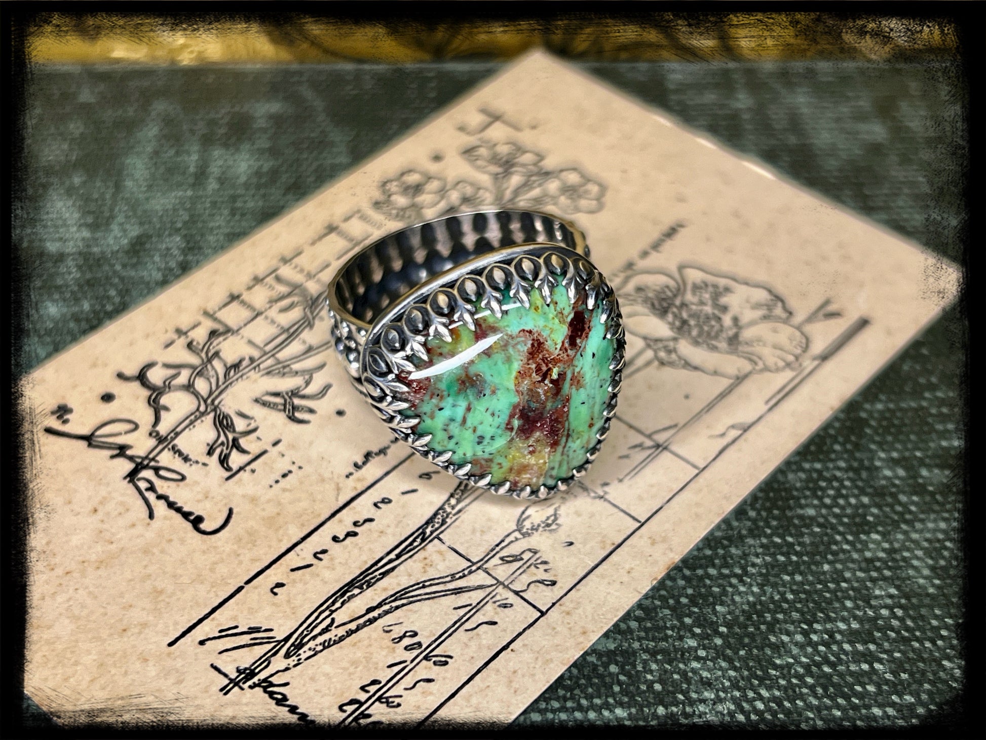 Chrysocolla Stone set in Sterling Silver Ring-Size 12-Handmade Artisan Jewelry