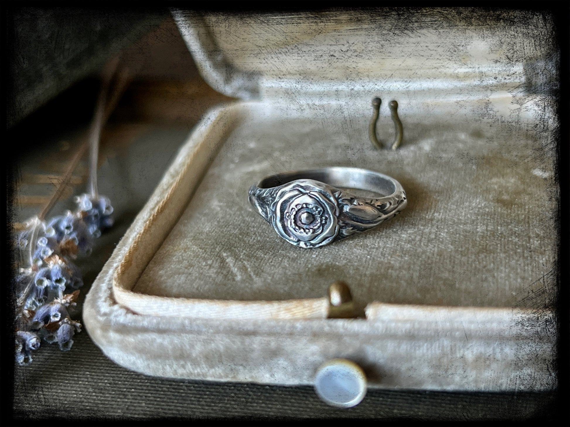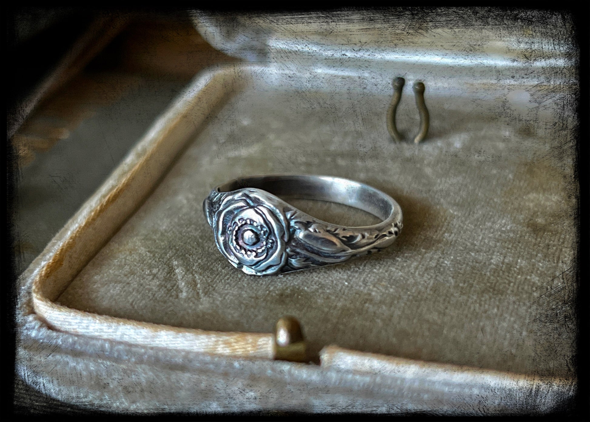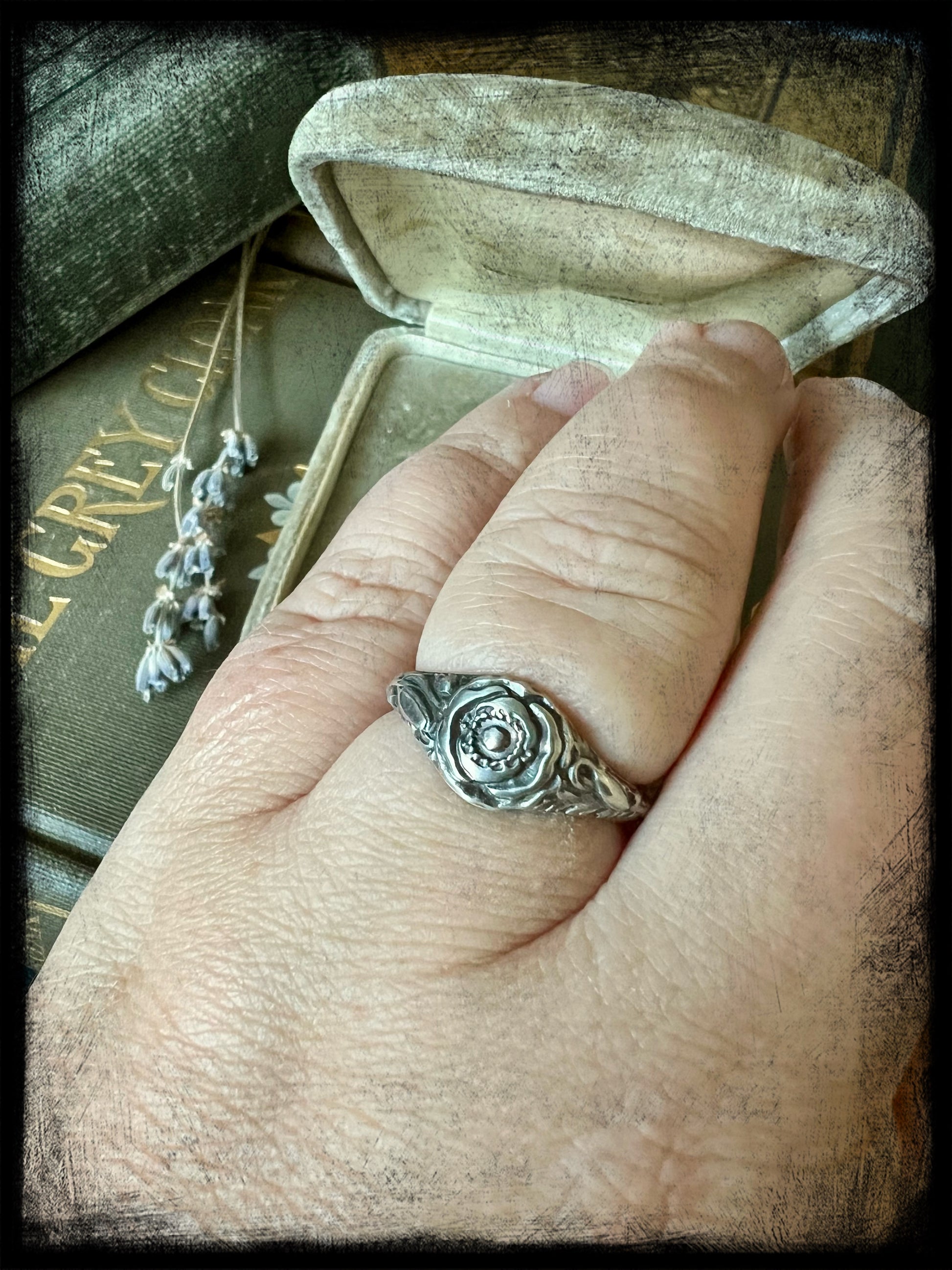 This is a beautiful Poppy Flower Birth Month Ring representing the month of August. This ring is part of a series of birth flower rings made from a steel die from the early 20th century. These are truly one of a kind.