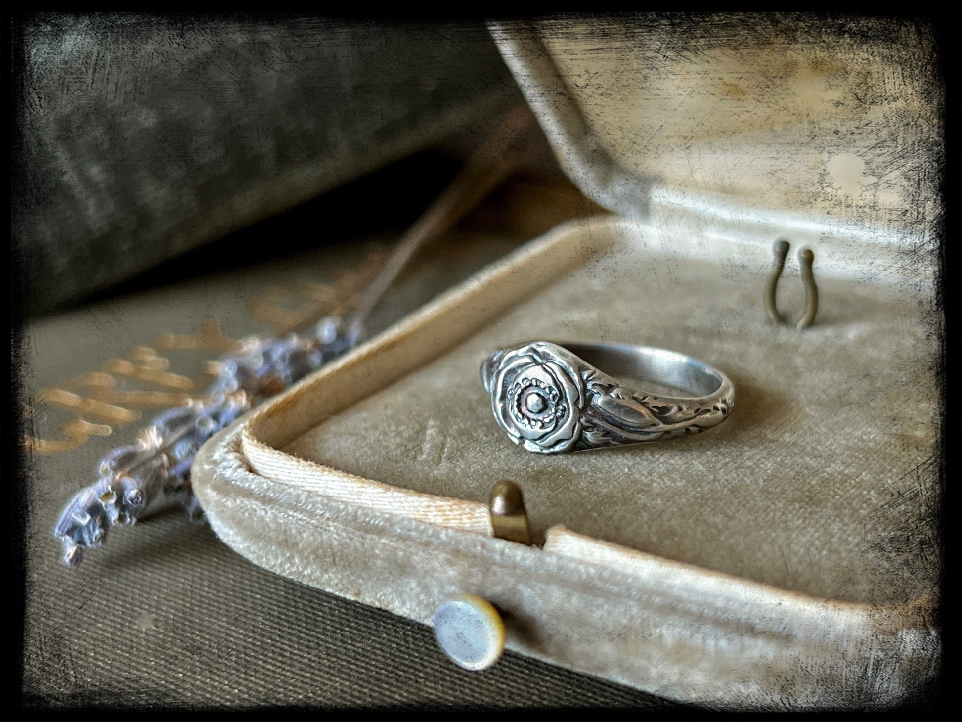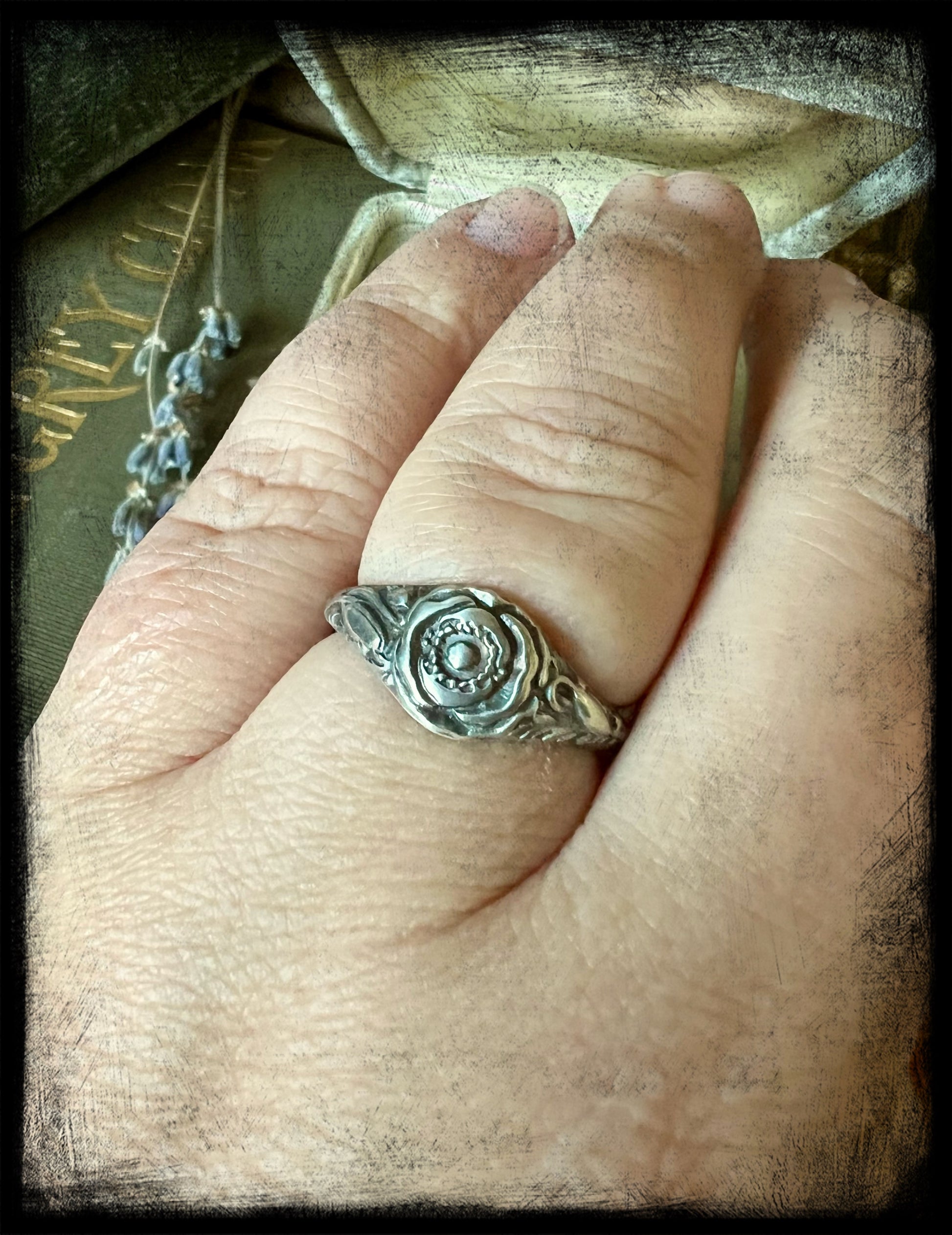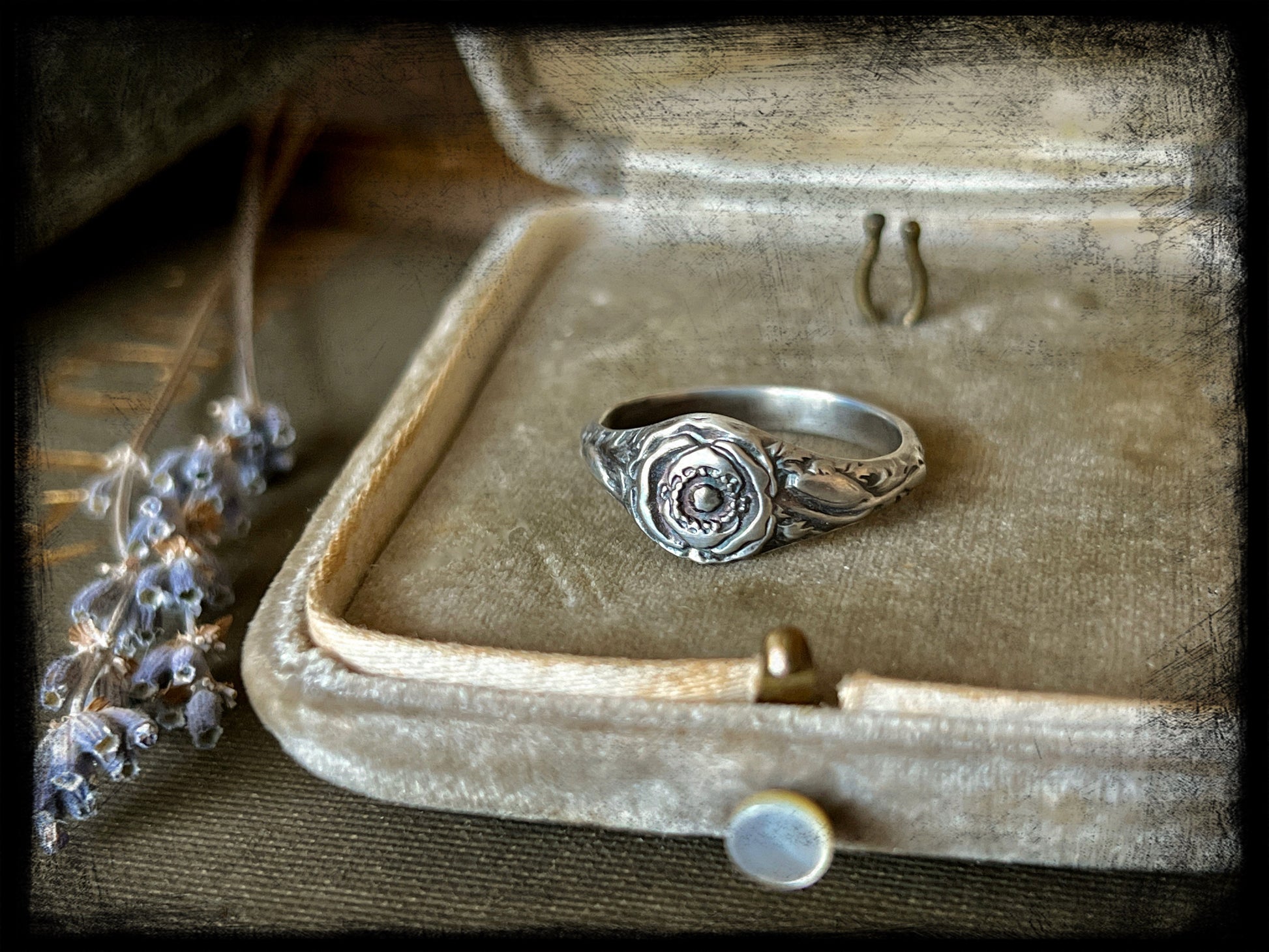 This is a beautiful Poppy Flower Birth Month Ring representing the month of August. This ring is part of a series of birth flower rings made from a steel die from the early 20th century. These are truly one of a kind.