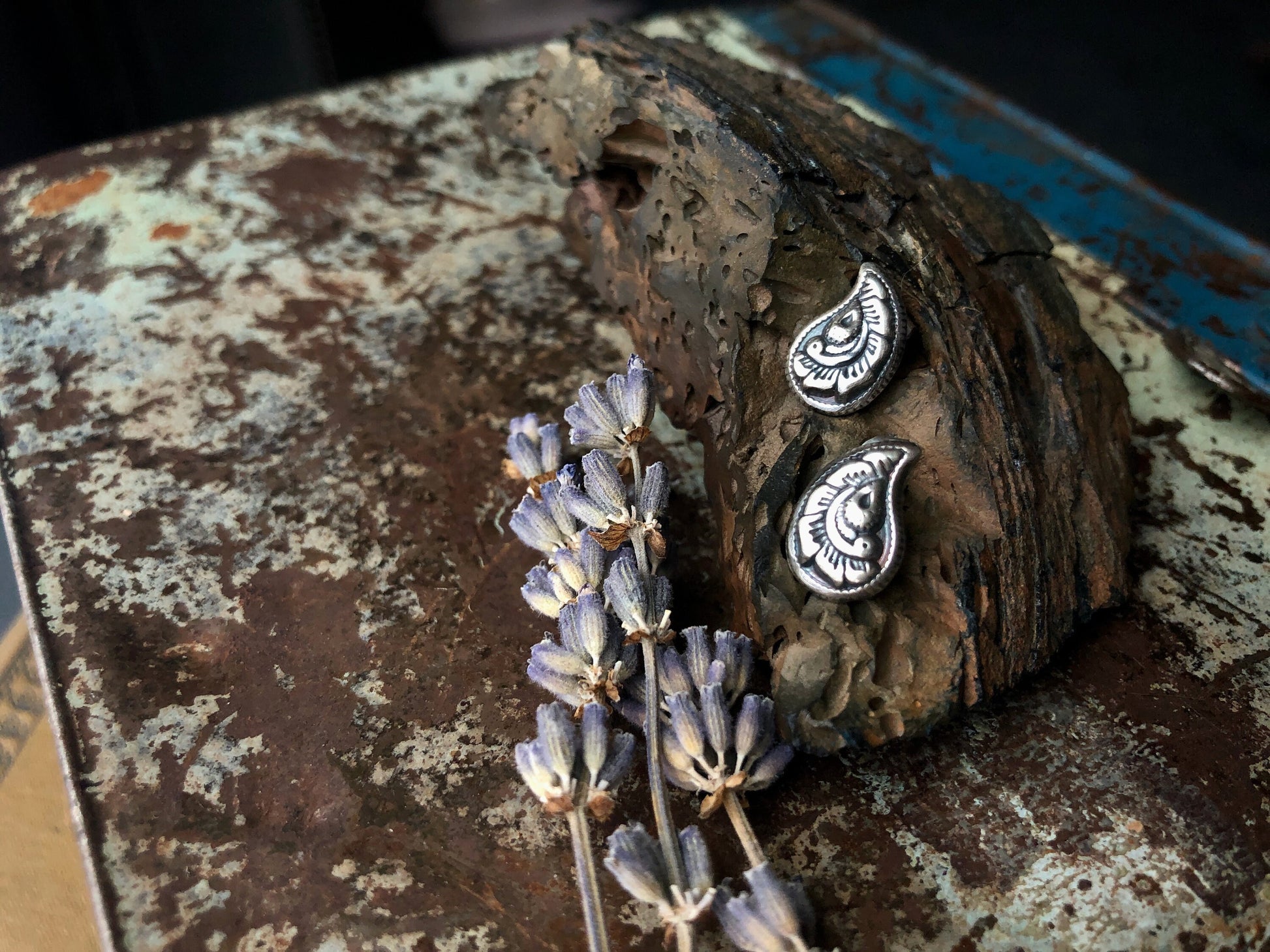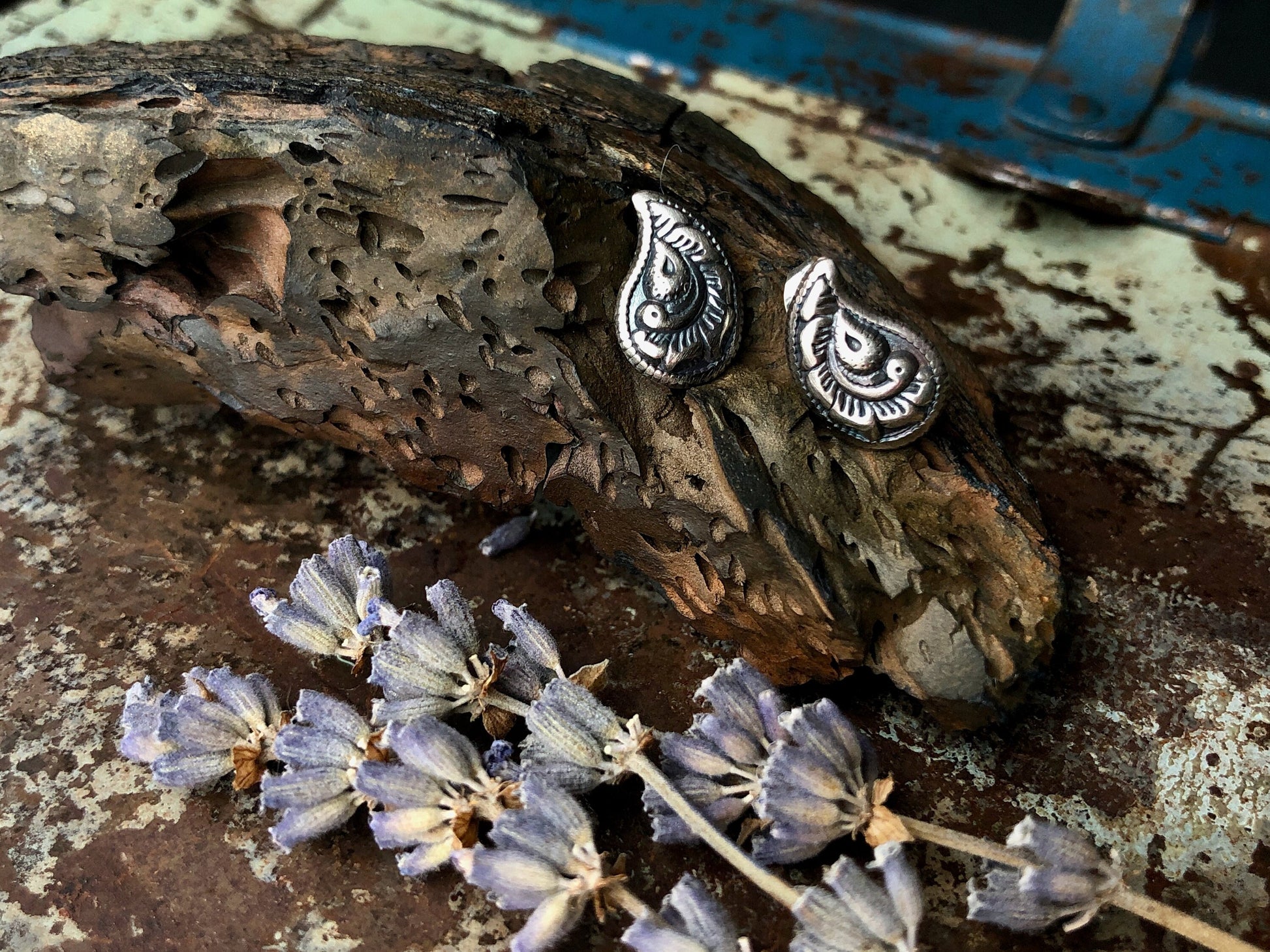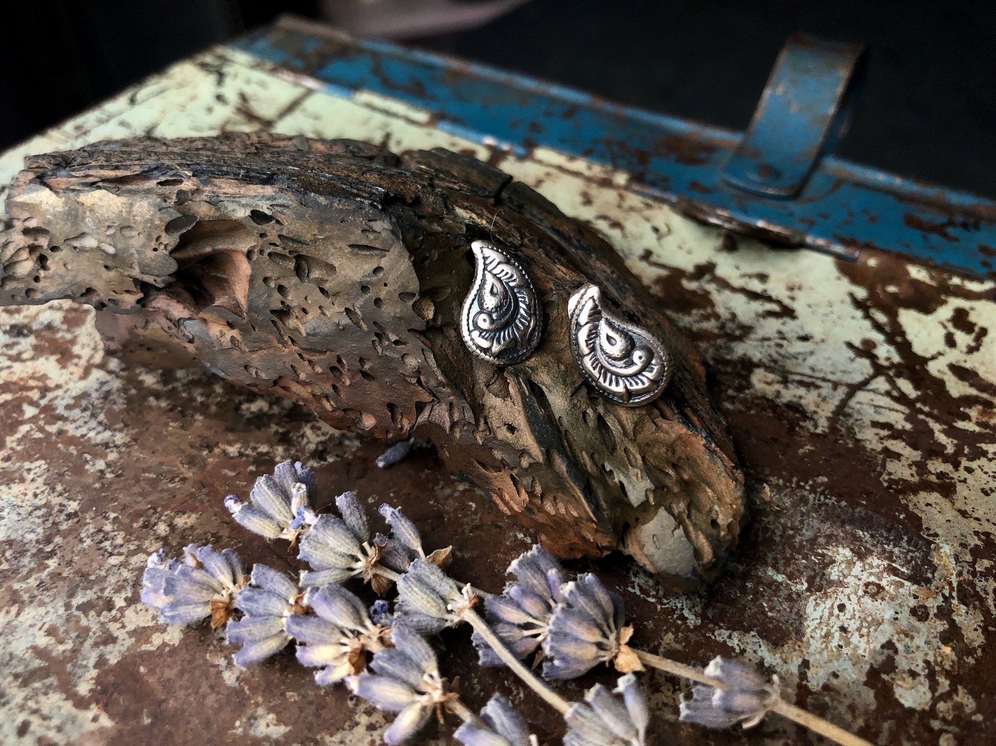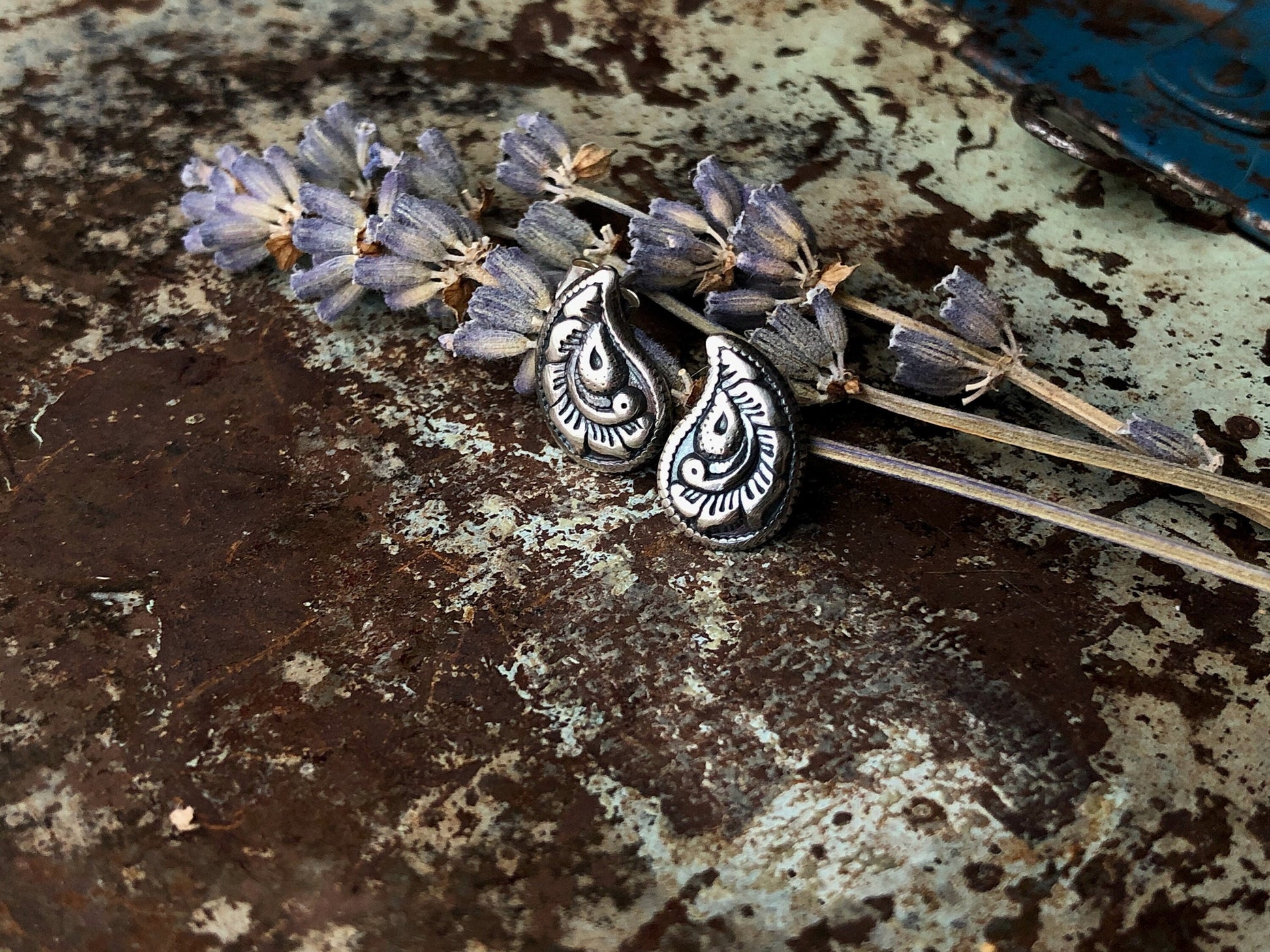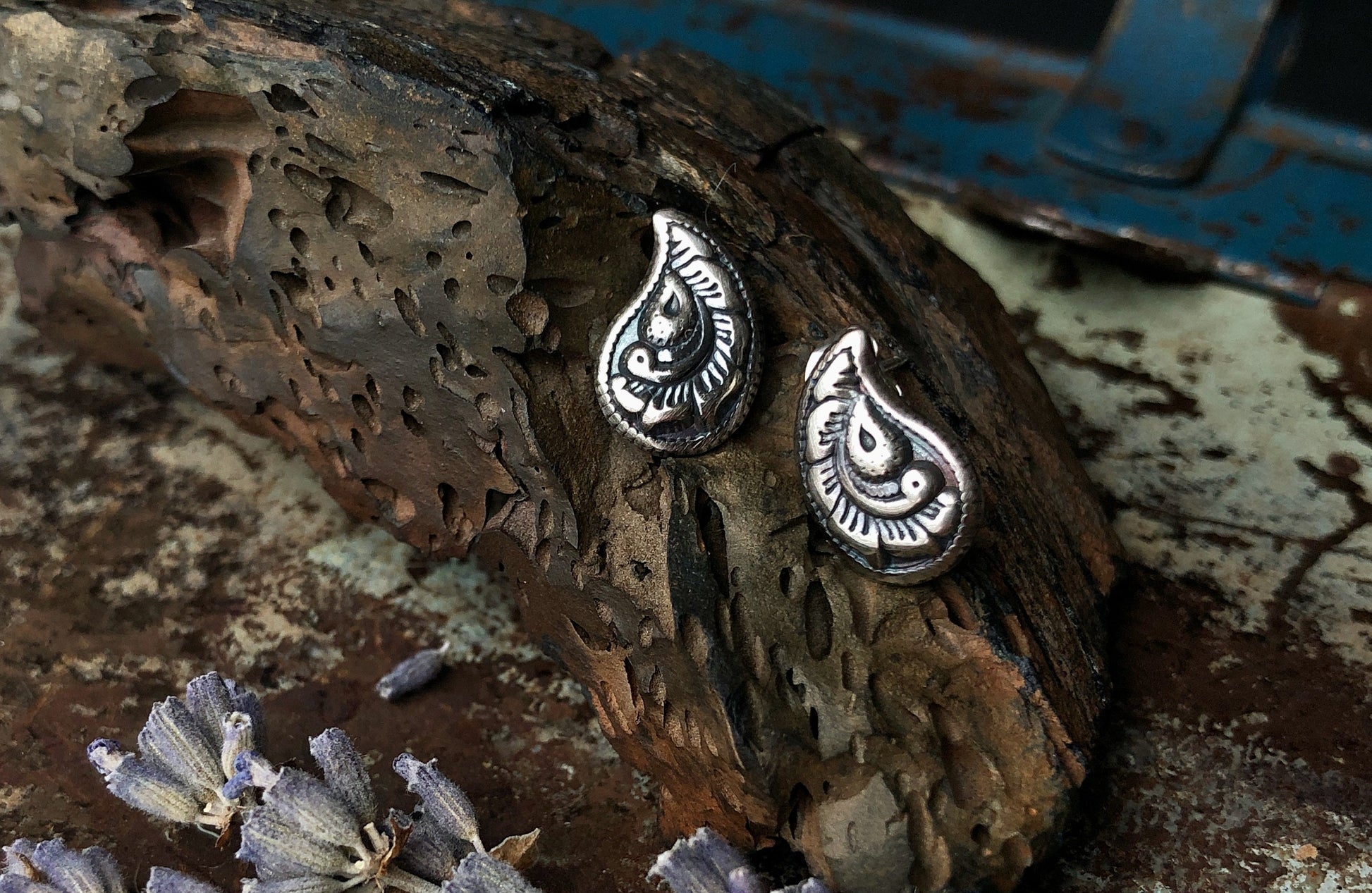 For sale is this beautiful pair of sterling silver peacock feather earrings. They measure ~1/2" in height and the stud post is sterling silver. Peacock symbolism and meanings include beauty, masculine power, sisterhood, protection, vision, renewal, good luck, and other special qualities. The peacocks are also symbolic of re-growth and rejuvenation, royalty, respect, honor, and integrity. They are also a symbol of beauty, love, and passion. In Hinduism and Buddhism, these birds are considered to be sacred and worshipped alongside their deities. Each piece is pressed using a 20 ton hydraulic press and each design can be pressed into Sterling Silver, Brass, Copper, or Nickel.