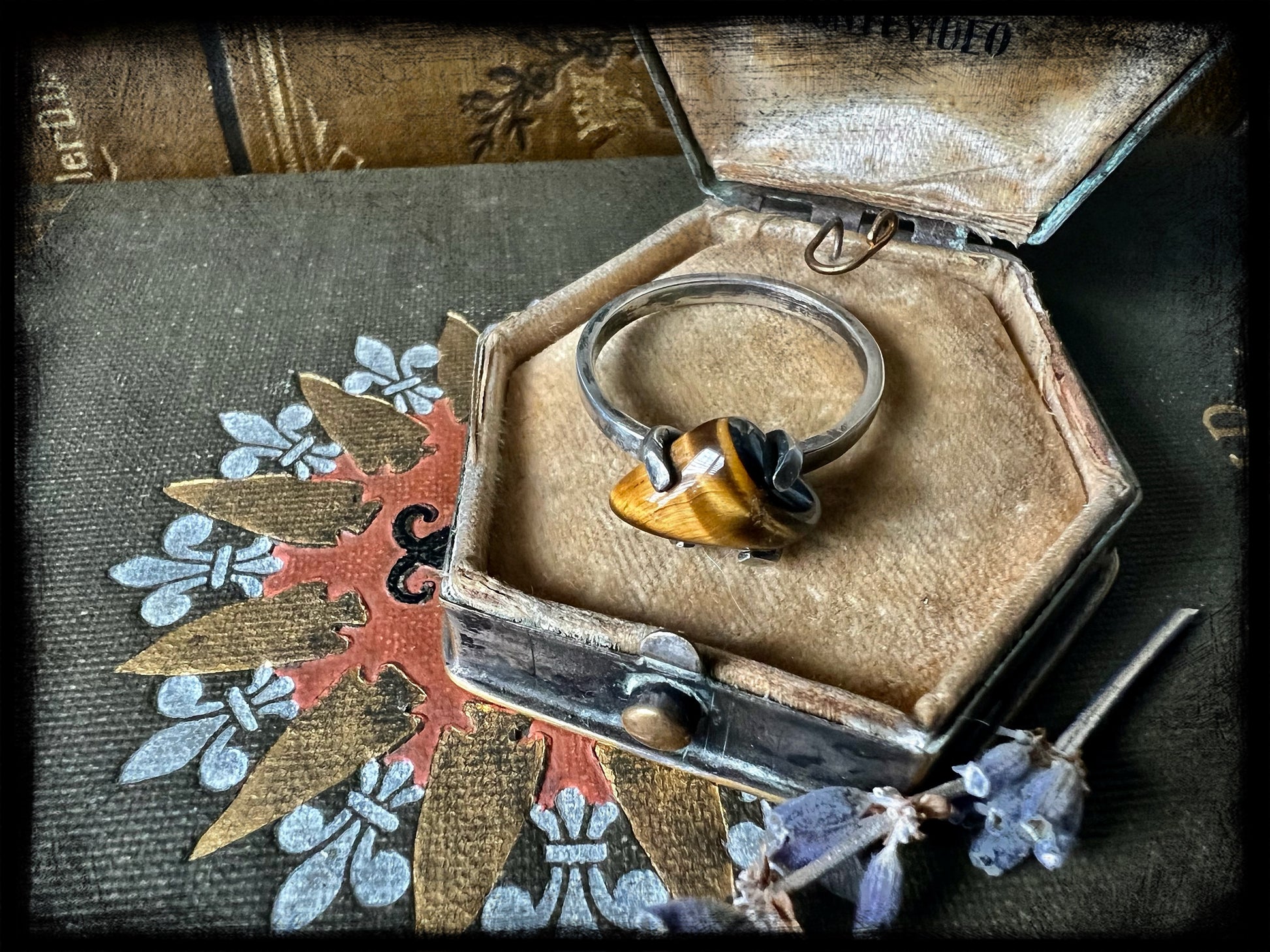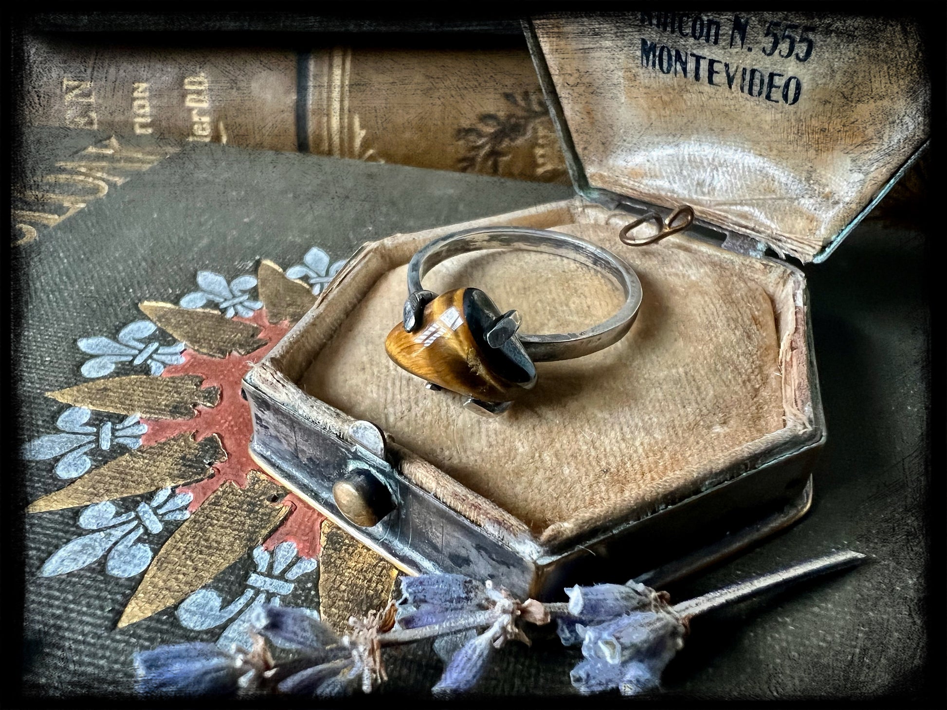 Tiger's Eye Stacker Ring-Sterling Silver-Size 7 3/4